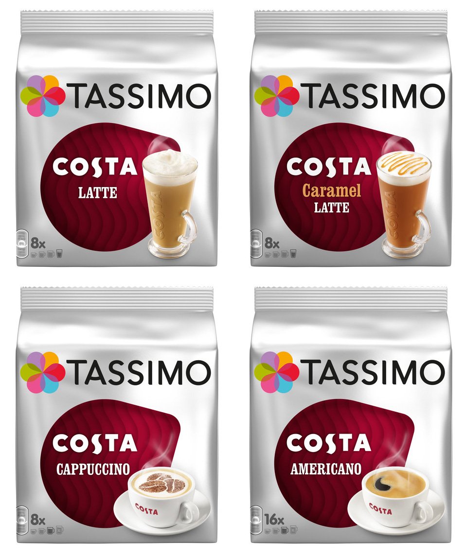 Tassimo 4 Packet Costa Coffee Mix Flavour T-Discs (Total 64 T-Discs / 40 Servings)